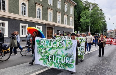 Am 31. Mai 2024 gingen Fridays for Future - unterstützt von zahlreichen weiteren For Future-Bewegungen - in Graz auf die Straße, um vor der EU-Wahl auf die Bedeutung von klimagerechter Politik und Demokratie hinzuweisen. Auch Religions for Future waren mit dabei, um die Stimme für eine enkeltaugliche Politik zu erheben.