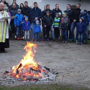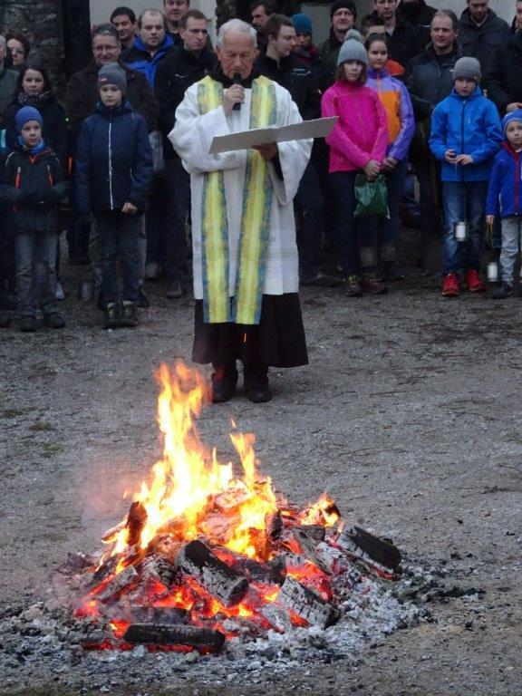 Am Karsamstag um 7 Uhr morgens wurde das Feuer für die Weihfeuerträger im Klostergarten von P. Simon gesegnet. Sehr viele Kinder, Jugendliche, aber auch Erwachsene, darunter auch der Herr Bürgermeister, waren schon so früh unterwegs, um den Gläubigen der Pfarrgemeinde das gesegnete Feuer zu bringen.