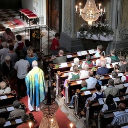 Tragischerweise wurde der Feiertag vom plötzlichen Tod unseres langjährigen Organisten und Chorsängers Franz Grasmugg überschattet. So erhielt das abschließende Segenslied, das eigentlich als Gruß und Dank des Chors an unseren scheidenden Pfarrer Pater Simon gedacht war, eine besonders tröstliche Bedeutung. Das für das 800-Jahr-Jubiläum der Diözese Graz-Seckau komponierte Stück verwendet im Refrain einen Text von Edith Stein: „Ohne Vorbehalt und ohne Sorgen leg´ ich alle Zeit in deine Hand“.