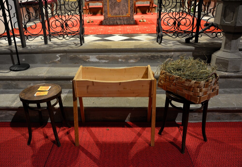 In der Zeichenhandlung waren die Mitfeiernden eingeladen die Krippe für das Kind mit Heu zu füllen und es mit einer Bitte an Maria zu verbinden.