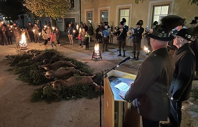Pfarre St. Gallen Hubertusmesse 2023 - Predigt In seiner Predigt geht P. Ulrich auf die Botschaft des Kreuzes im Leben des heiligen Hubert und im Leben jedes Christen ein. mehr: Hubertusmesse 2023 - Predigt